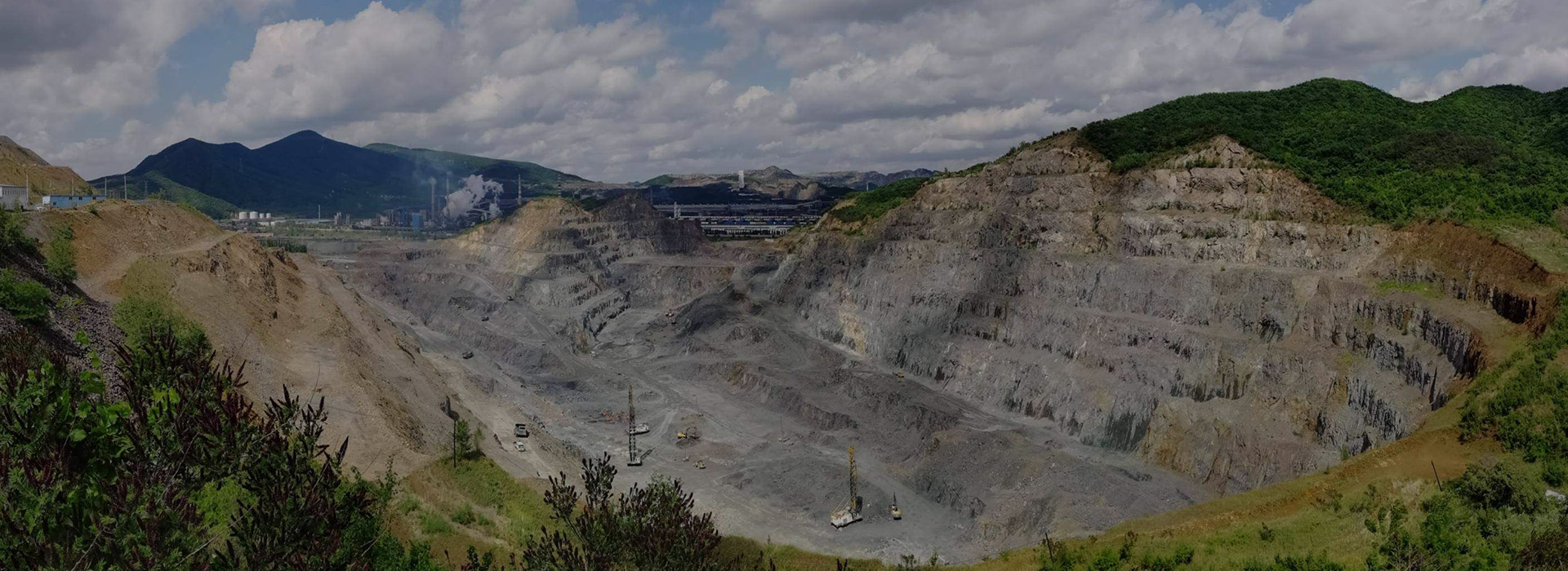 礦料自四周高處開(kāi)采出來(lái),經(jīng)裝載機(jī)裝載后,由9輛自卸斗重卡運(yùn)送至南部半山腰的的卸貨等待區(qū)